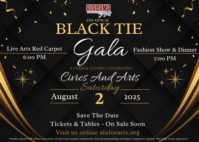 Join us for an unforgettable evening at the 5th Annual Black Tie Gala. This elegant event brings together change-makers, artists, community leaders, and civic-minded citizens to celebrate the power of the arts to inspire, uplift, and drive social transformation. Funds raised will directly support year-round programs that empower marginalized communities through civic education, voter engagement, and access to the arts.